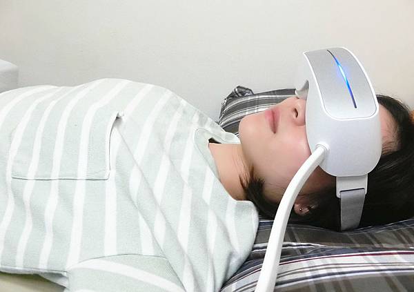 此水波式按摩眼罩坐著、躺著皆可使用